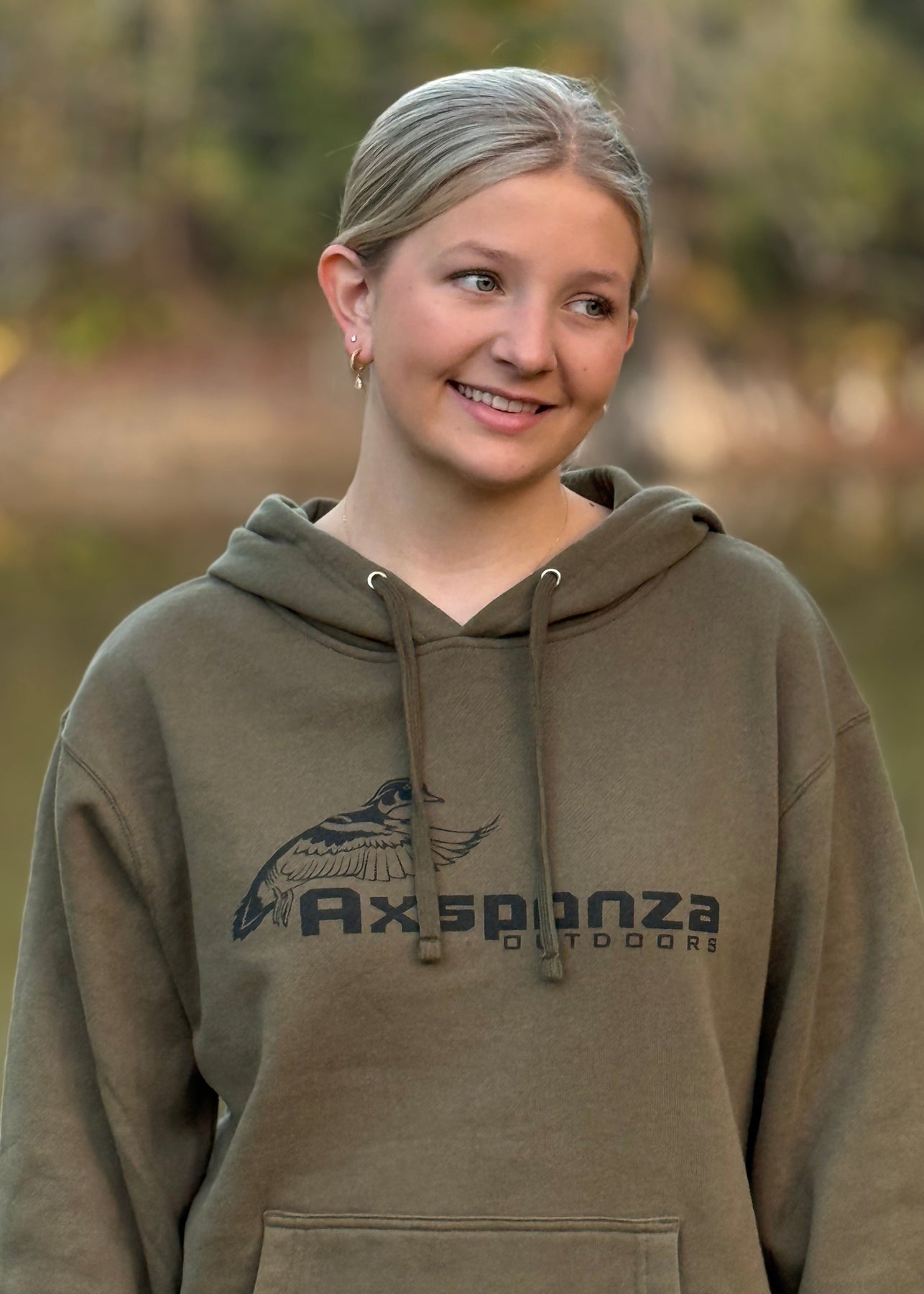 Front and center, the Cupped Wood Duck Axsponza Outdoors logo stands out as a mark of Southern heritage and passion for the hunt. Ribbed cuffs, a spacious front pocket, and a double-stitched hood complete the look built for warmth and reliability.